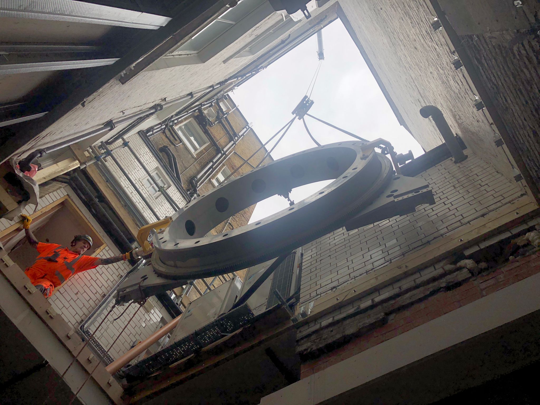 In London, the Harley Street delivery required navigating one of the most logistically complex urban environments in the UK. After working with Westminster Council to secure parking permits and manage road closures in this busy city, the Unity system needed to be lifted over a building, through a skylight, and lowered into a sub‑basement using a 300 tonne crane.